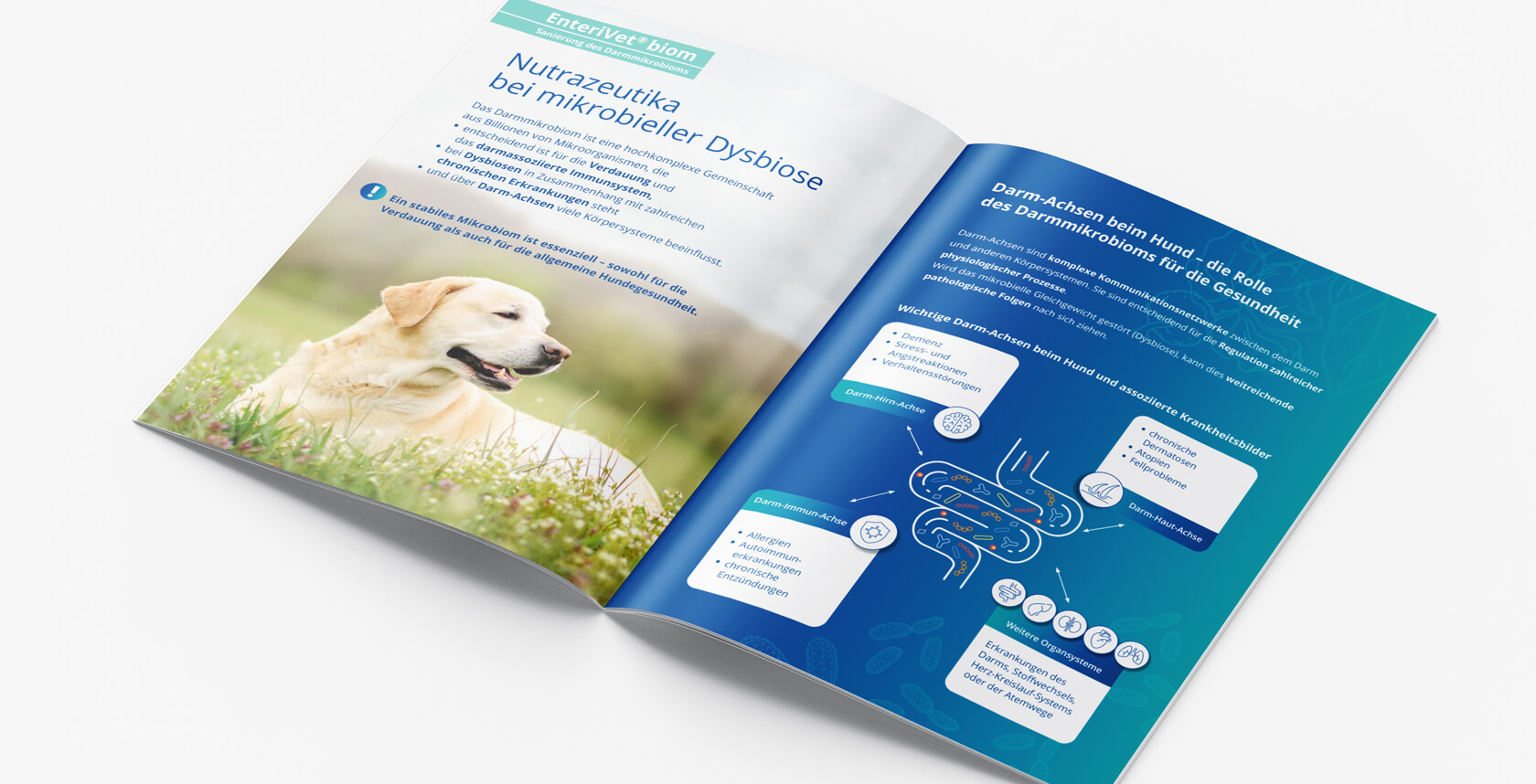 Die neue Markenwelt wurde konsequent auf relevante Kommunikationsformate übertragen – von Anzeigen bis hin zu Außendienst- und Fachbroschüren. Für den Vertrieb entstanden redaktionell und wissenschaftlich fundiert aufbereitete Materialien, die Wirkmechanismen und Key Benefits der Nutrazeutika nachvollziehbar erklären. Eine Gesamtübersichtsbroschüre strukturiert das gesamte Darmsortiment und stellt die Vorteile anschaulich dar.