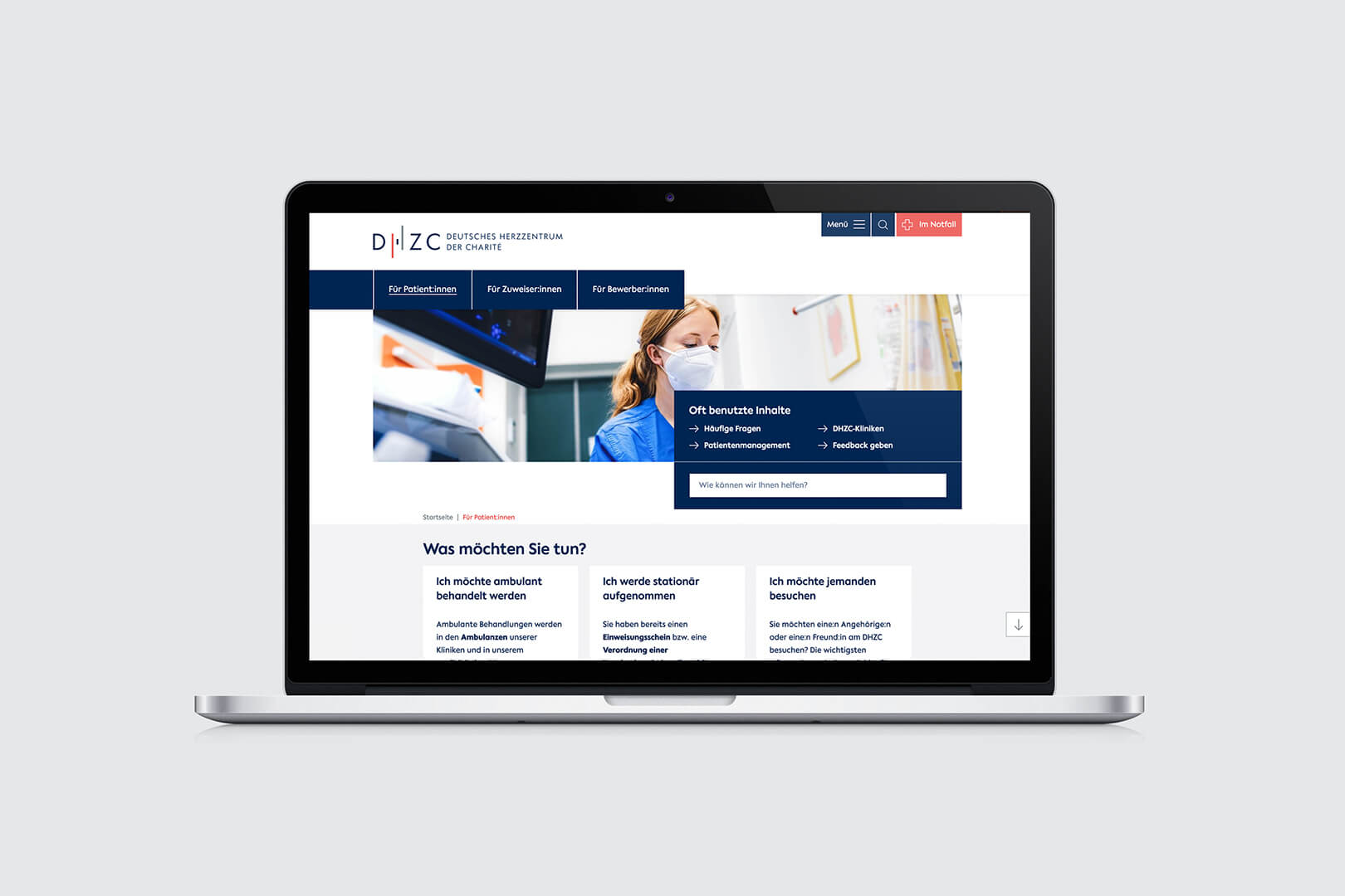 Referenzprojekt Deutsches Herzzentrum der Charité Webseite Mockup (Laptop)