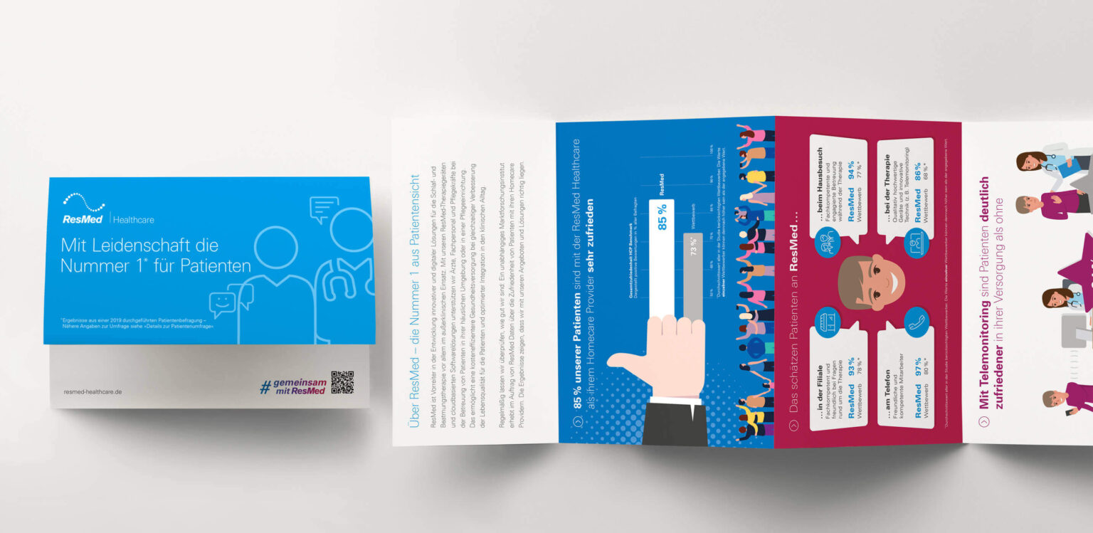 ResMed ist ein weltweit erfolgreiches Unternehmen für medizinische Geräte zur Behandlung von Atemwegserkrankungen und Schlafapnoe. Für die Überwachung der Schlaf- und Beatmungstherapie im außerklinischen Bereich (und damit eine größere Sicherheit für die Patienten) hat das Unternehmen digitale Systeme entwickelt. Deren Akzeptanz bei den Kunden wurde 2019 in einer unabhängigen Studie im Vergleich zu anderen Homecare Providern in Deutschland ermittelt. ResMed erreichte einen NPS von + 30, Wettbewerber die Kennzahl + 6. Das bedeutet: Die Wahrscheinlichkeit, dass Patienten ResMed weiterempfehlen, ist fünfmal größer. Dieses positive Ergebnis wurde im Anschluss u. a. auf einer Battle Card kommuniziert.