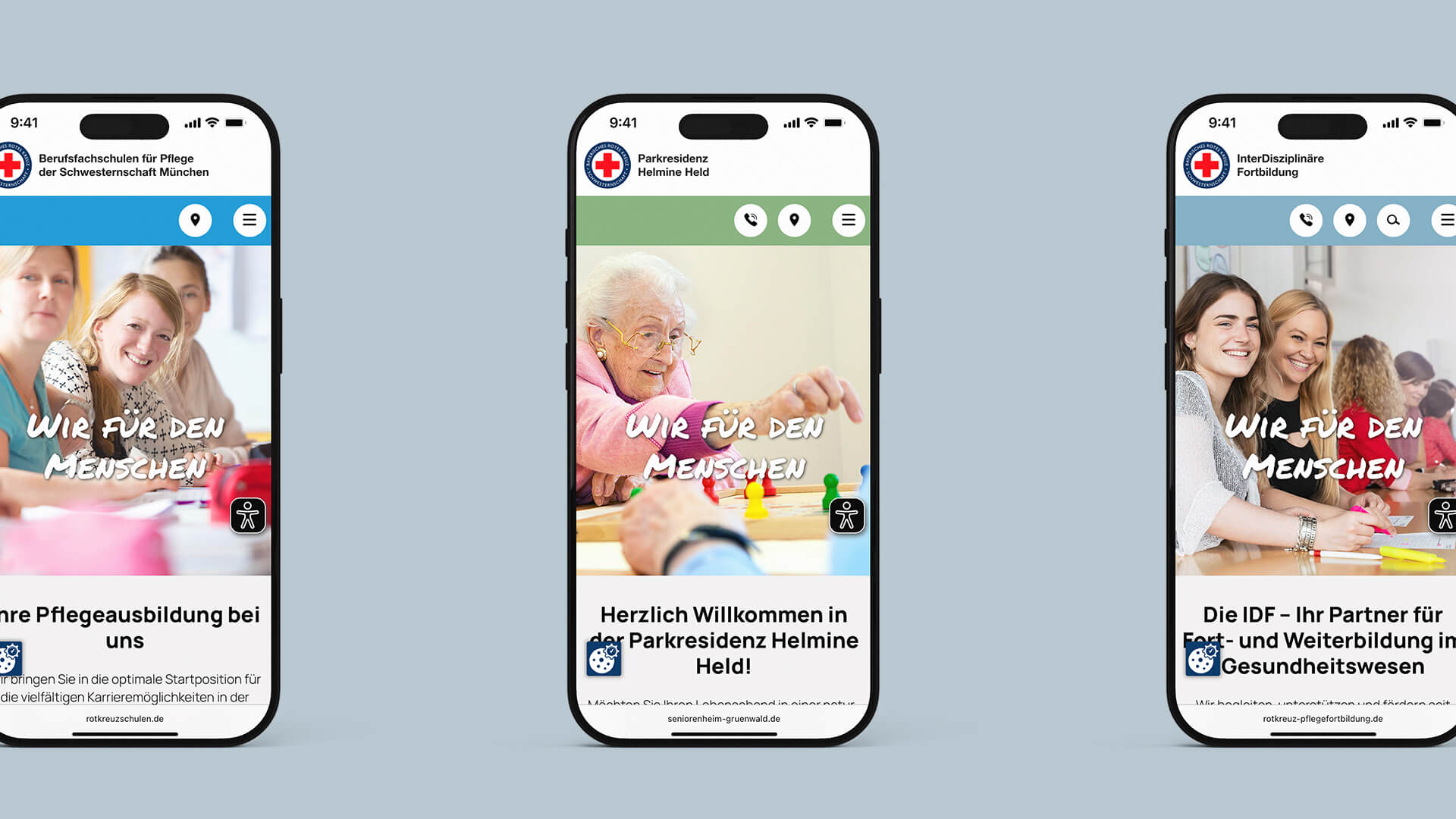 Die beiden Hauptziele waren die Seiten im UX-Design neuer und moderner zu interpretieren sowie die Zusammengehörigkeit der Einrichtungen stärker auszudrücken.